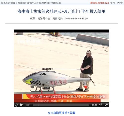 (南海网) 中国、海南省で、海南省海洋・漁業監察総隊(海南省海洋与渔业监察总队)(以下、海南海監)と中国航空工業集団(AVIC)によって、大型ドローン(無人ヘリ)による海上での法執行活動の訓練、デモフライトが初めて行われた。 海南海監が購入した…