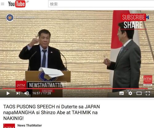 (via. YouTube) 来日中のフィリピンのロドリゴ・ドゥテルテ(Rodrigo Roa Duterte)大統領。 暴言や粗雑な振る舞いが、ニュースやワイドショーで頻繁に、おもしろおかしく取り上げられています。目立つのは分かるけれども、そればかりに時間を使って、貧困や…