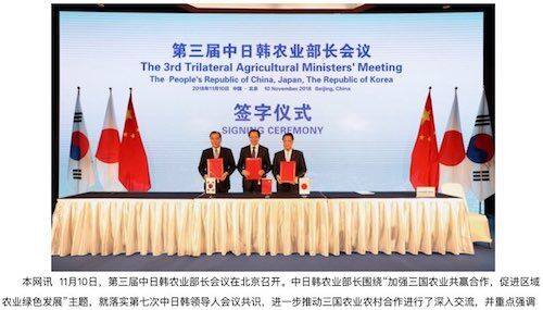 (農林水産省) 11月10日、日本、中国、韓国の農業担当の閣僚会合が北京で開かれ、中国の韓長賦(韩长赋)農業農村部長が議長を務め、𠮷川貴盛農林水産大臣と、韓国のイ・ゲホ(이개호)農林畜産食品部長官が出席した。 会談では、鳥インフルエンザや口蹄疫…