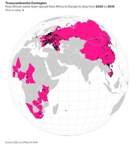 (via. blooberg) 中国で、2018年8月に、アジアではじめて発生が報告されたアフリカ豚コレラ(African Swine Fever, ASF)。 2019年4月下旬の公式発表によると、約112万頭が病死および殺処分、屠殺(と殺)が行われた(非公式では、5月中旬までに112.9万頭以…