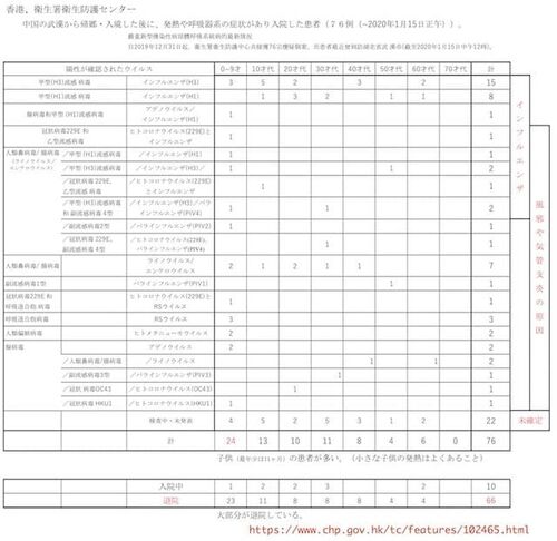 中国、湖北省武漢市で、昨年(2019年)12月から、原因不明の肺炎や呼吸器系の症状の患者が発生しています。最新の発表と報道では、感染患者59例、重症7例。退院8人。(2020年1月9日まで) 香港の「疑い例」について少し。 ・すでに患者の半数以上、27人…