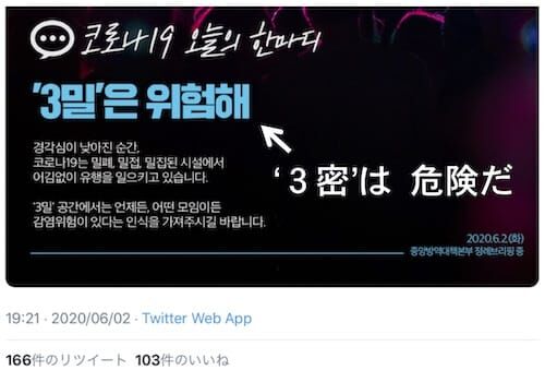 (韓国CDCツイッターより) 新型コロナウィルスの第2波が、首都ソウルから各地へ拡大している韓国。 実は、その韓国でも「3密」が使われています。韓国語で「3密」は"3밀"。密閉は"밀폐"、密接は"밀접"、密集は"밀집"と書きます。 いつから使われはじめた…