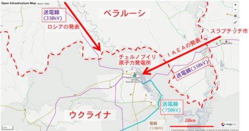 (チェルノブイリ原子力発電所。銀色の大きな屋根が「石棺」(GoogleEarthより)) ロシア軍の侵攻によって、ウクライナのチェルノブイリ原子力発電所(Чорнобильська АЕС)(*1)への外部電力が喪失する事態が起こりました。原因は、高圧送電線3本のうち2本がロ…