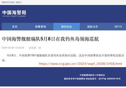 (中国海警局より) 5月8日、沖縄県の尖閣諸島の沖合で、中国海警局の船4隻が尖閣諸島の沖合で日本の領海に侵入した。海上保安庁 第11管区海上保安本部によると、4隻はおよそ2時間、領海内を航行したあと、午後0時半ごろまでに領海を出た。 八重山日報の9日…