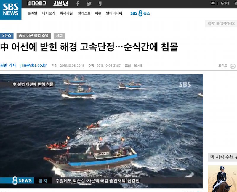 韓国の海上警察組織(海洋警察と海洋水産部・漁業管理団)は、10月7日の事件後にも違法操業の取り締まり活動を強化している。20日までに摘発された中国漁船は17隻(2015年の摘発総数は568隻なので、特別に多かったわけではない)。いずれの漁船も、摘発に対して強い抵抗はせずに拿捕されている。
