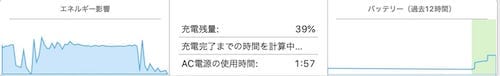 テストを開始したときのバッテリー残量は9%、これらのテストをおこなった後(約2時間後)のバッテリー残量は39%となった。