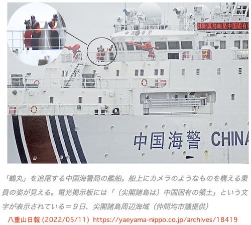 日本漁船にカメラ構える 中国船、尖閣周辺で執拗に追尾 | 八重山日報 (2022/5/11)